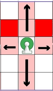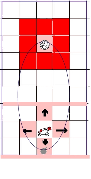 The pink squares indicate where the cannon can nove (one square up, down, left, right)