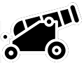 All cannons and their ammunition may move vertically or horizontally, but only one square at a time. They can be taken, like any other piece.